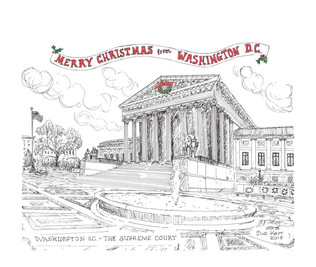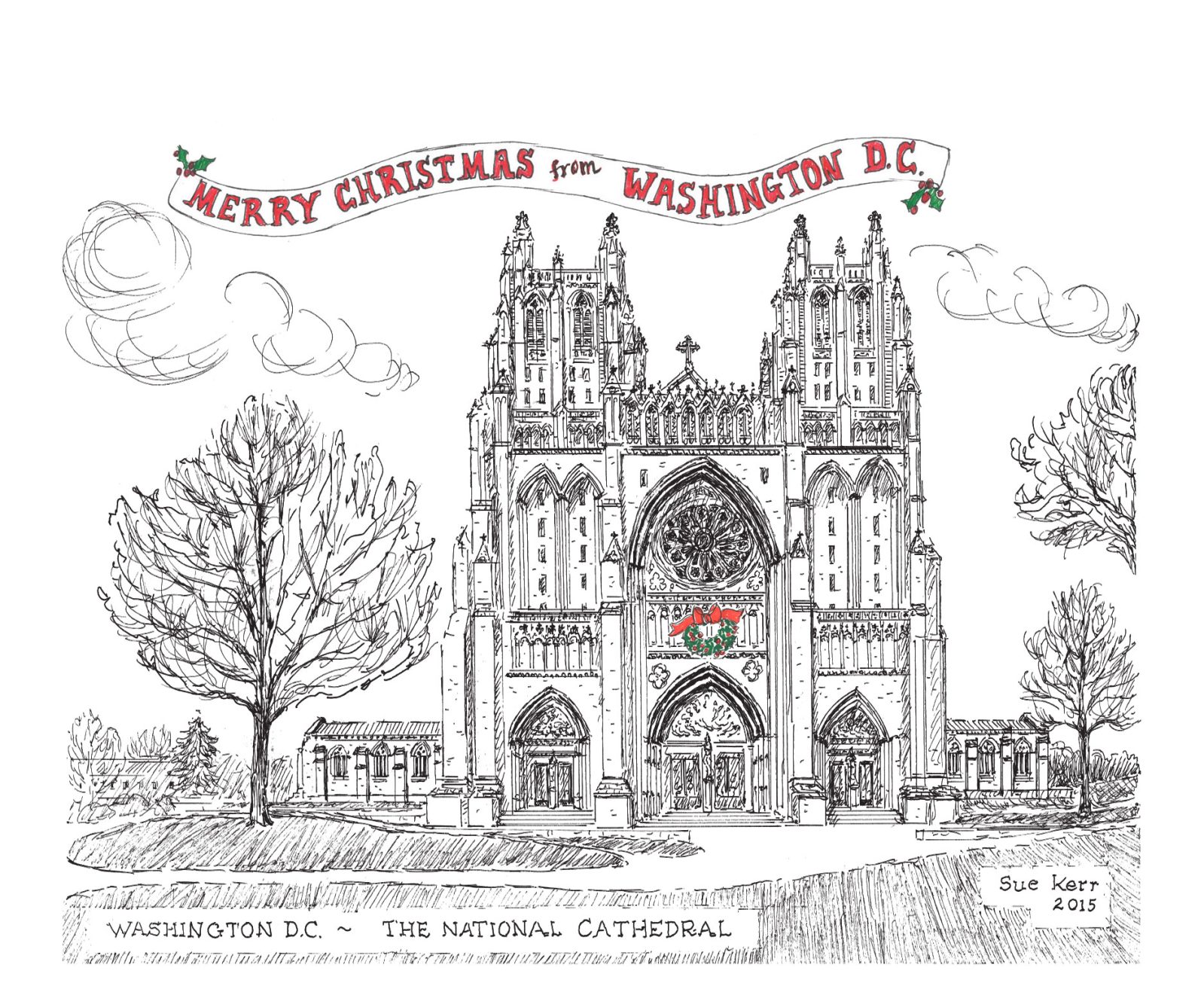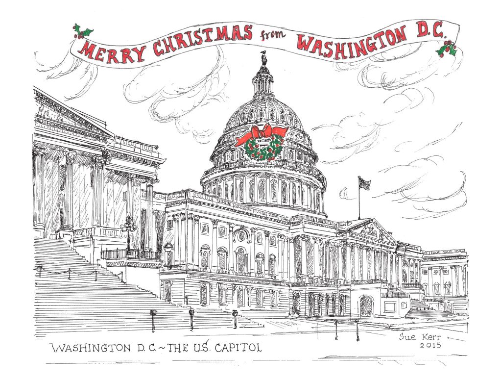 Skyline includes views of The White House, The Lincoln Memorial, The Jefferson Memorial, The Washington Monument and The Capitol Building (tiniest bit of artistic license to fit all of these landmarks on one card)