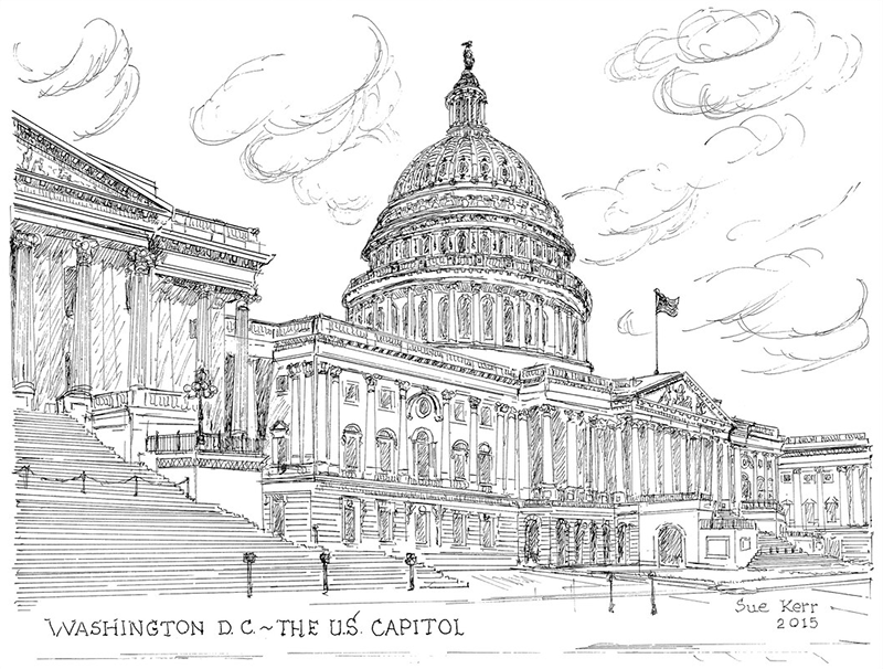 From the buildings representing our three branches of government to the monuments of some of our well-loved founding fathers, Sue Kerr’s Washington D.C. collection features thirteen of the most distinguished locations in the City of Magnificent Intentions (coined by Charles Dickens.)